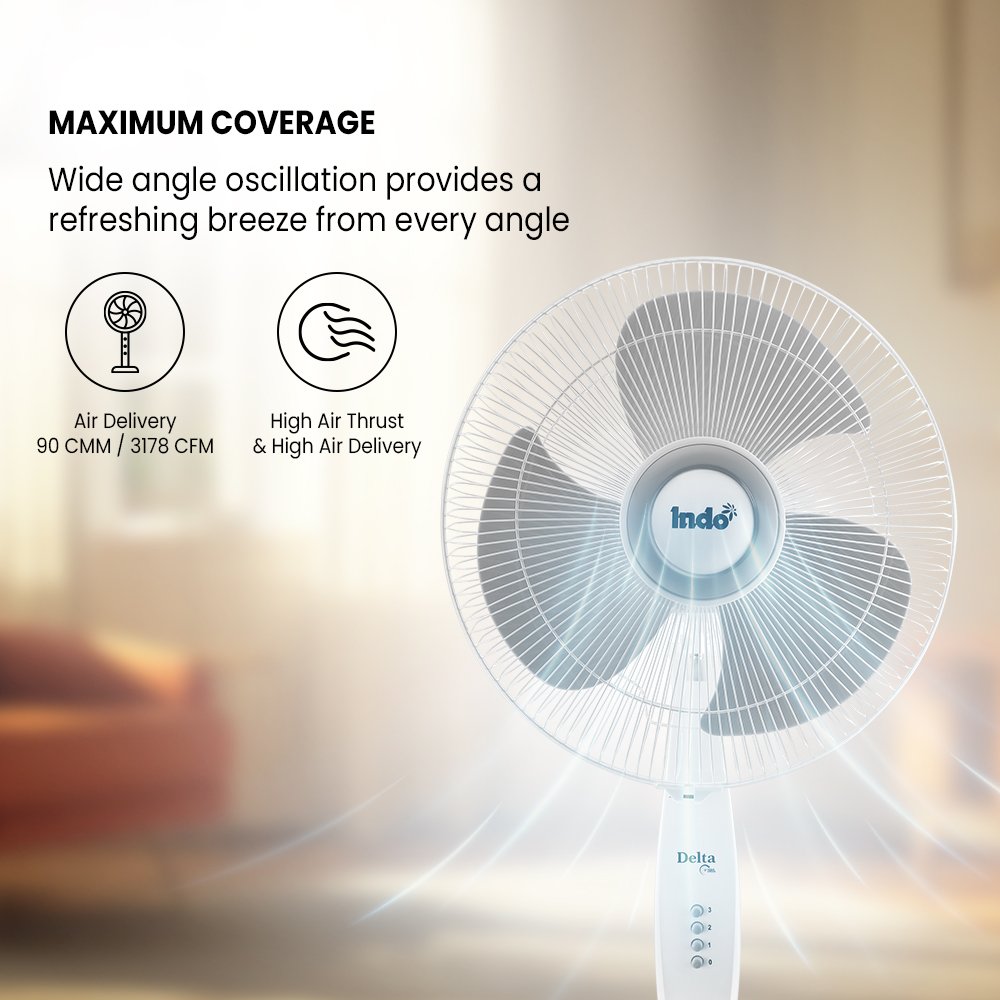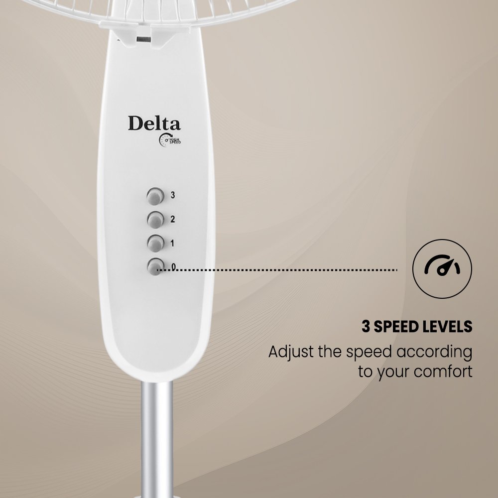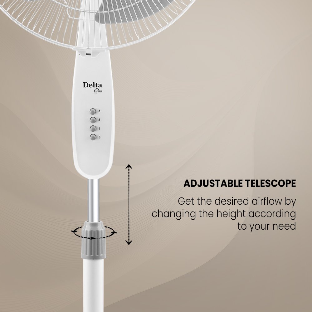 Built for powerful airflow, it offers strong air delivery with high thrust, ensuring quick cooling even on warmer days. The adjustable telescopic pipe lets you set the height just right, while smooth oscillation quietly spreads air across the room without distraction. Designed for long-term use, the rust-proof body and blades add durability you can rely on every day. With three speed levels to suit your comfort and silent operation that doesn’t interrupt your moments, Alpha / Delta is a dependable cooling companion. Backed by a 2-year warranty, it’s made to keep the breeze flowing, season after season.