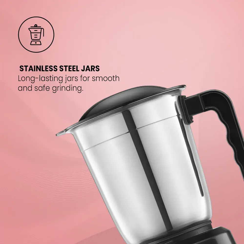 Equipped with sturdy stainless steel jars, Club Neo 3x delivers efficient grinding and easy handling, making it a dependable partner for daily cooking. Backed by a 2-year warranty, it’s made to keep up with your kitchen rhythm and your favourite recipes.