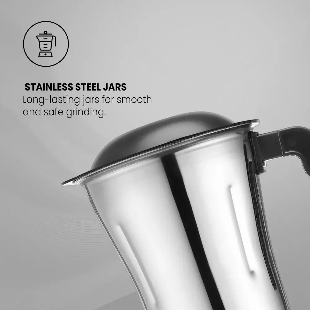 Equipped with sturdy stainless steel jars, Panther delivers efficient grinding and easy handling, making chopping, mixing, and blending feel effortless. Backed by a 2-year warranty, it’s made to keep up with your cooking rhythm chop, mix, repeat.