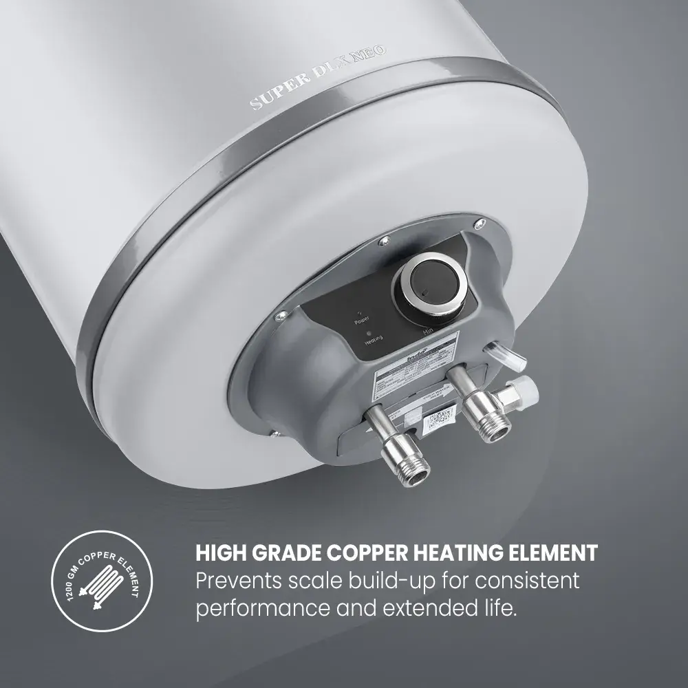 Introducing the Super DLX Neo Storage Water Heater engineered to provide efficient and reliable hot water solutions for your home. With its advanced features and high-quality design, this geyser promises long-lasting performance and optimal safety.