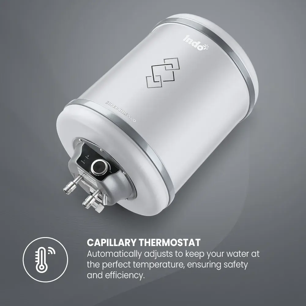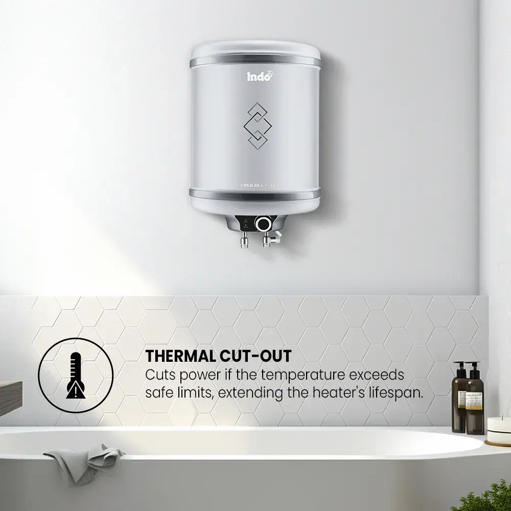 Indo Super DLX Max is designed for homes that value strength, safety, and steady performance. Built with a robust stainless-steel tank and efficient insulation, it delivers reliable hot water while handling everyday pressure with ease. Its clean design and dependable build make it a practical choice for daily comfort without complications. It’s simple, sturdy, and made to work consistently just the way a water heater should.