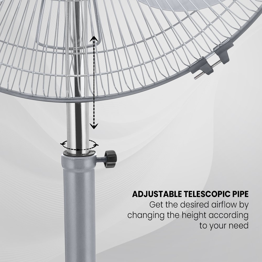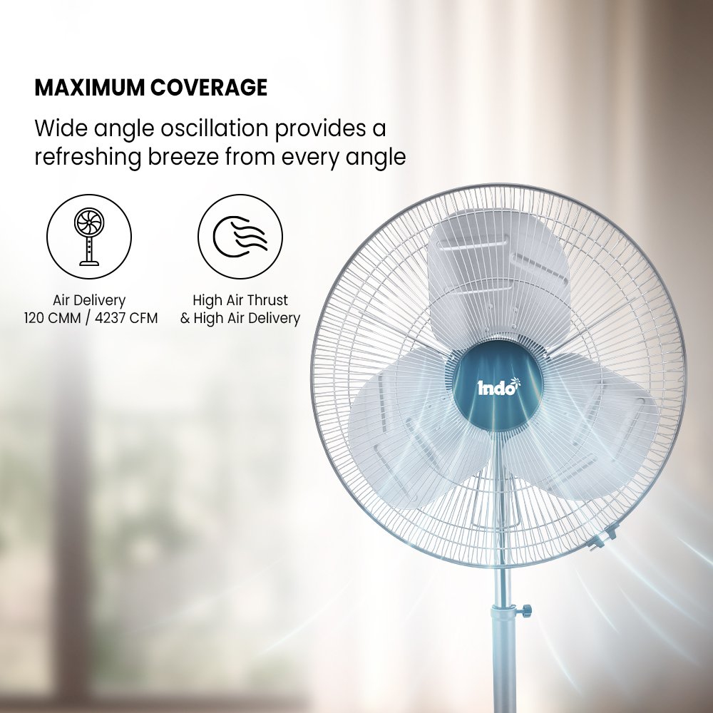 With high air thrust and smooth oscillation, Vikrant Neo spreads air evenly across the room while maintaining quiet operation. The adjustable telescopic pipe lets you set the height as per your comfort, and its sturdy, rust-proof body and blades ensure long-lasting performance. Available in aluminium and copper finishes, it combines durability with a clean, functional look. Backed by a 2-year warranty, Vikrant Neo is made to keep the breeze moving, day after day.